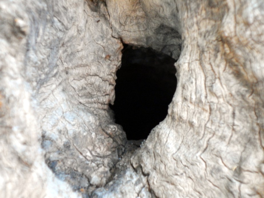 In my backyard, there is an olive tree. Half dead, the live portion is supported by the barkless portion and enjoys luxuriant growth. In the base there are holes where lizards live. It looks like such an interesting place to explore if I were tiny.