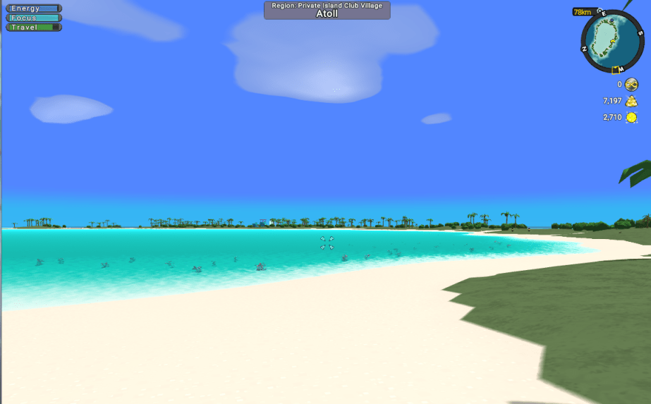 HI3 is a nearly infinite world, fully 3-D rendered, and is centered on exploring a vast new land, building an awesome ranch, joining a club, catching wild horses, breeding them, and much more. Since musical instruments exist, you can even form a band! I’d love to see a bunch of bagpipers play in-game. You can also take photos, watch wildlife, dive into the ocean, do quests, and play games. How infinite is the map? Well, it’s one MILLION kilometers across. That’s like walking around the Earth twenty-five times. Since you can save locations and teleport back to them, you can get around pretty well, and there’s literally always something to explore and something new to see. Please see below for my ever growing guide, as well as more remarks about the game.